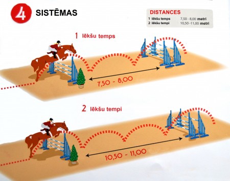 Evita Baradovska gan jāatzīmē, ka attālumi sistēmās ir pārlieku plati, ja ņemam vērā, ka šķēršļu augstums būs līdz 120cm. 8 metri viena tempa sistēmai ir ļooooti plata sistēma, tāpat 11m būs par daudz.